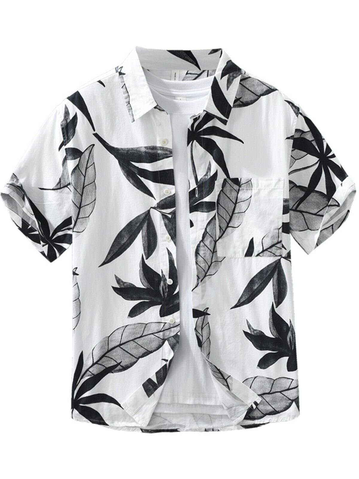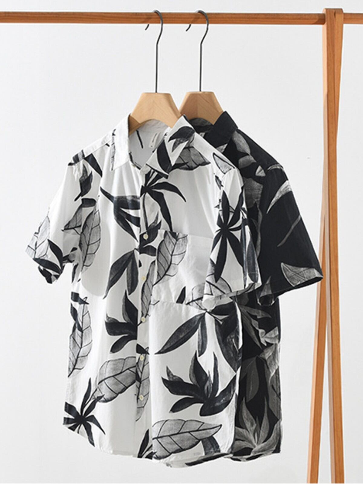 リーフ柄×シンプルカラーのアロハシャツ。
