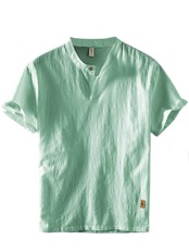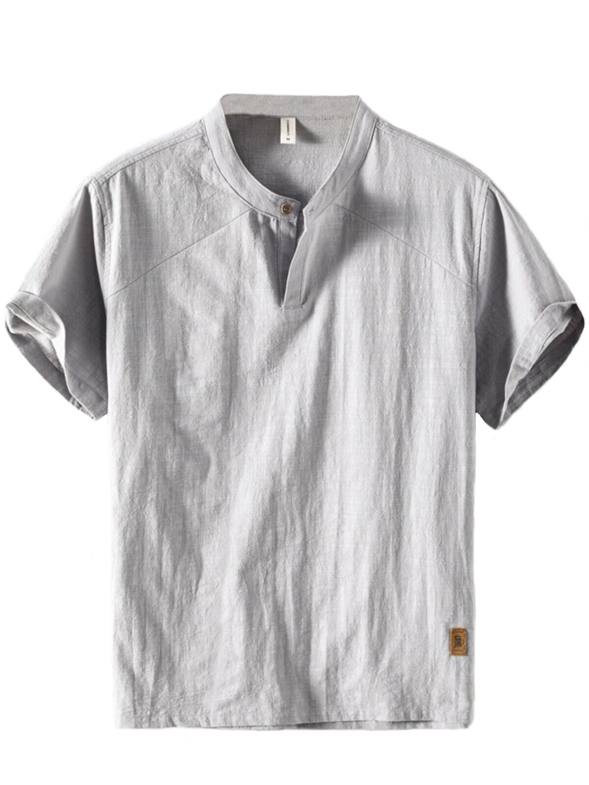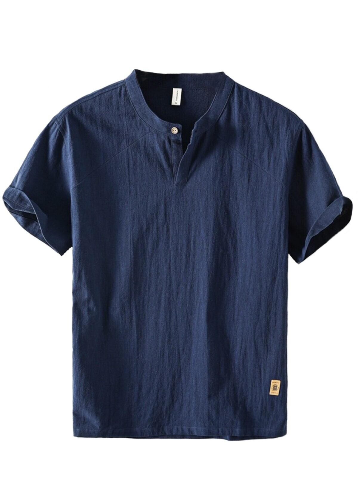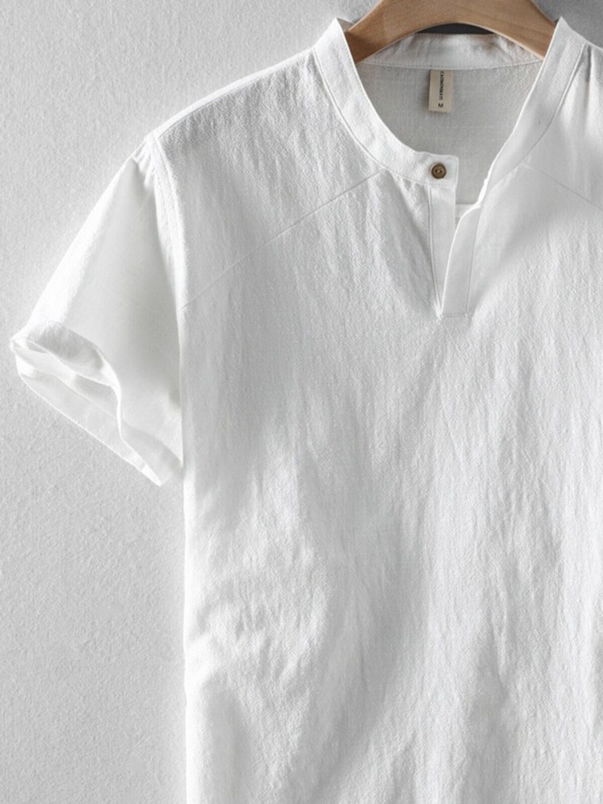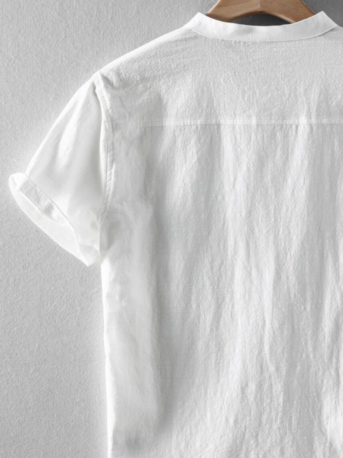 柔らかな印象の上品なリネン混の半袖シャツ。